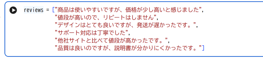 まずは、レビューのデータをPythonで用意します。