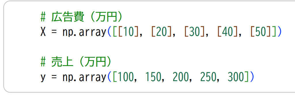 今回は「広告費が増えると売上も増える」という関係を学習させようとしています。